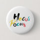 Diseño gráfico moderno, lúdico y colorido de un dicho "Hocus Pocus" en colores rojo, amarillo, azul y negro. Tipografía creativa, experimental y alegre.