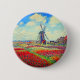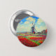 Botón que muestra la pintura de Claude Monet sobre la flor y el molino de viento. Hermosos y coloridos campos de tulipanes rojos, rosados y amarillos junto a un molino de viento y casa en Holanda. Un gran regalo de Monet para los amantes del impresionismo y el arte francés.