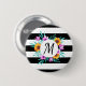 Chapa Redonda De 5 Cm Monograma floral elegante de las rayas negras de