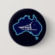 Una simple silueta blanca de un trineo de perro y la Cruz del Sur superpusieron en un mapa azul de Australia. Todo en un fondo estelar. ¿Quién lo hubiera pensado? Mushing boca abajo en Oz. El trineo de perros es bastante popular en Australia. En el Monte Hotham en Victoria hay una gran carrera cada año.