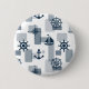 Seamless nautical themed design with sailing boat, compass, anchor and sailing wheel decoration on blue and white geometrical background