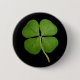 Pin/botón negro de trébol real 4 hojas. Se puede personalizar el color de fondo.