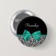 Personalice añadiendo el nombre de cualquier muchacha a este moderno botón de estampado de leopardo blanco y negro con una cinta verde esmeralda atada en un lindo arco. Esta elegante etiqueta de nombre de impresión animal es una imagen impresa plana y no contiene cinta real.