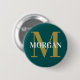Chapa Redonda De 5 Cm Nombre personalizado Monograma oscuro Verde azulad
