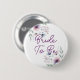 Un elegante botón de ducha nupcial de diseño floral en color ciruela morado acuarela con follaje verde salvia y azul polvoriento con la inscripción 'Novia a Ser'.