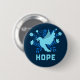 Ave azul de esperanza y paz. Diseño gráfico y de texto que representa la silueta de una paloma con la palabra esperanza. Botón para gente esperanzadora y optimista.