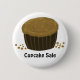 Un divertido botón de venta de pastelitos. Una deliciosa tarta de chocolate helado con chispas de chocolate más claras. Dice 'venta de cupcakes' que esto puede cambiarse como se desee.