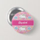 La insignia ofrece un diseño del unicornio en un fondo rosado bonito. El nombre exhibido en una cinta rosada.
