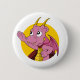 Botón con ilustracion de cabeza de un lindo dragón volador rosa, en círculo amarillo, diseño de fantasía lindo / cuento de hadas para los niños por Maxi Harmony