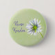 Un botón de nombre personalizado personalizado una flor blanca de margarita Shasta esbozada con lápiz y acuarela sobre un suave fondo verde de estilo texturado. ¡Un alegre botón con el nombre de la flor margarita que simboliza a las excepcionales enfermeras!