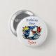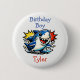Happy Birthday Boy Button personalized with your child's name. A blue, red, orange and yellow pop art shark themed birthday button.