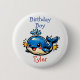 Happy Birthday Boy Button personalized with your child's name. A blue and yellow pop art whale themed birthday button.