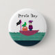 Un profundo mar azul acuático con un barco pirata y un joven pirata con su confiable loretano verde.