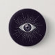 Una mirada malévola que se da a los desconocidos. Un globo ocular violeta de bonito, pestañas estilizadas plateadas con sol celestial, luna y estrella, triángulo y círculo forma un talismán para los supersticiosos y creyentes de la magia apotrófica. El motivo del mal ojo, una maldición sobrenatural de la leyenda. Una mirada desafortunada conocida a nivel mundial en muchas culturas y por muchos nombres. Nazar turco, indio y paquistaní, Mati griego, en España y Mal de Ojo. Ojos místicos diseñados específicamente para hombres y mujeres que quieren un encanto de buena suerte o un amuleto para evitar una superstición malvada. Un botón, un botón, un botón o una placa de moda, muy coquetos y modernos.
