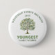 Gente de la familia Woodland Tree Young Family Member Award Keepsake Button... El diseño de árboles de la familia acuarela con hojas de color verde y amarillo suave le da un aspecto de bosque natural para sus accesorios de reunión familiar. Este botón está diseñado como un premio para el ganador del concurso "Miembro de la Familia más joven" que asiste a la reunión del año en curso. Todo el texto de ejemplo se puede revisar fácilmente con sus propios detalles en la plantilla de personalización.