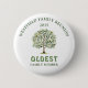 La Reunión Familiar Woodland Tree Old Family Member Award Keepsake Button... El diseño de árboles de la familia acuarela con hojas de color verde y amarillo suave le da un aspecto de bosque natural para sus accesorios de reunión familiar. Este botón está diseñado como un premio para el ganador del concurso "Miembro de la Familia Mayor" que asiste a la reunión del año en curso. Todo el texto de ejemplo se puede revisar fácilmente con sus propios detalles en la plantilla de personalización.
