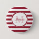 Un simple botón de pinza de rayas rojas y blancas. Personalice este patrón casual agregando su nombre y monogramado inicial. Este moderno diseño de monograma forma parte de la colección de colores de verano Chili Pepper Stripes Personal Essentials.