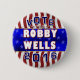 Vote por botón de los pozos 2016 de Robby con el fondo de la bandera de las barras y estrellas, en sombras del rojo, blanco y del azul: Elección presidencial 2016: Demócrata: botones de la campaña para Demócratas: política: político: liberal: Presidente: Los Estados Unidos de América: candidatos
