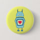 Botón de robot lindo con un ilustracion personalizado de un torpe robot personalizado azul sujetando un plato con un corazón sobre fondo amarillo brillante. Este botón robot es adecuado para niños y geeks que aman robots y ilustraciones lindos.