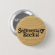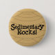 ¡Expresa tu amor por la geología sedimentaria con este botón "Rocas sedimentarias!"! Este artículo presenta el juego de palabras "Rocas sedimentarias!" en un fondo con motivos marrones en las camas cruzadas.
