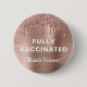 Muestre su aprecio por la ciencia médica y la oportunidad de ser completamente vacunado contra covid-19 con este divertido botón de chica que presenta a un purpurina de imitación de oro rosa goteando un fondo metálico falso de oro rosa y "Totalmente vacunado" y "¡Gracias ciencia!" en una simple tipografía y escritura blanca (y personalizable por usted).