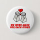 Un par lindo de coctelera de sal y de pimienta que se besaban con un corazón arriba con ellas y el subtítulo "nos hicieron para uno a"