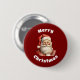A button with a cute retro style illustration. Santa Claus with a bushy white beard wearing his traditional red suit.
