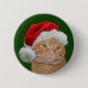 Naranja tabby cat en un botón de foto Navidades de Santa hat
