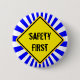 seguridad primero - un gran mensaje en un botón de advertencia divertido