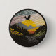 A sticker with an eagle flying over a mountain, in the style of contemporary landscape, golden light, black mountain college, fisheye lens, arts and crafts movement, mid-century illustration