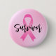 El botón "Sobreviviente" del cáncer de mama presenta letras de escritura negra modernas y personalizado con cinta rosada simbólica y fondo gradiente rosado.