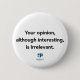 Una frase favorita del Pragmatic Institute, este pin le ayudará a mostrar su valor para la voz del mercado sobre las opiniones internas. Tu opinión, aunque interesante, es irrelevante.