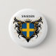 Diseño fresco del escudo con colores suecos de la bandera nacional. Substituya el texto "Suecia" por su propio lema para crear un regalo sueco personalizado único del orgullo. Ideas personalizadas del regalo: #1 papá sueco, mamá, abuelo, abuela, tío, tía, esposa, marido, [el otro miembro de la familia]; Orgulloso ser sueco, rocas de Suecia.