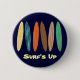 Botón del pasador de las tablas de surf de rayas. El color de fondo y el texto se pueden personalizar.