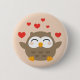 Pequeño ilustracion lindo y feliz de búho con cálidos corazones rojos volando por ahí. Un pájaro gracioso de colores marrones claros y con patas amarillas brillantes. Esta lechuza trae felicidad y amor, y le gusta animarte o enviar los mejores deseos a alguien que quieras. También puede personalizar de los antecedentes de sus necesidades.