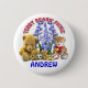 Un botón lindo con espacio para el nombre de un niño. ¡Un pequeño recuerdo para los picnic!