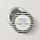 Con un clásico fondo de rayas blancas y negras, estos elegantes botones de regalo de boda para parejas presentan un elegante borde de lámina de oro falso que enmarca su mensaje de boda personalizado especial en tipografía chic. Diseñado por Thisisnotme