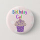 Un botón perfecto para la chica de cumpleaños... quequitos de cumpleaños en un fondo rosado de puntos de polka...¡cartas de cumpleaños brillantes!