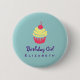Hágale saber a todos que eres el chica de cumpleaños. Personaliza con tu nombre. Un diseño delicioso para los que tienen un diente dulce. Un quequito helado amarillo con el fondo rosado y una cereza encima. El fondo es de un color verde retro.