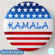 Kamala Harris botón de SWAG para los voluntarios partidarios de los demócratas. Para un diseño de apoyo a la campaña presidencial de Kamala Harris, un diseño audaz y fortalecedor que combina tipografía y símbolos patrióticos para crear una declaración visual sorprendente. En el centro del diseño, aparece el nombre de Kamala Harris en una tipografía grande y elegante. Utilice un tipo de letra moderno para transmitir un sentido de visión de futuro y progreso. Para realzar el atractivo visual del diseño, añada un acabado sutil y pulido con un efecto de sombra, dando a la tipografía un sentido de profundidad y dimensión. Este enfoque no sólo resalta el nombre de Kamala Harris, sino que también asegura que los colores y patrones de la bandera resalten de manera vibrante. Este producto tiene como objetivo celebrar la candidatura de Kamala Harris con un fuerte estilo patriótico, usando la tipografía y la bandera de los Estados Unidos para crear una poderosa declaración de apoyo para su campaña presidencial.