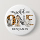 1.ᵉʳ Cumpleaños Salvaje Un Safari Animales Tema Botón de Relieve metalizado dorado