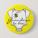 Este botón trasero adorable de la insignia o del perno dice a todas sus huéspedes de la fiesta de bienvenida al bebé "que soy la abuela a la abeja". Fondo amarillo y blanco brillante de los lunares con un equipo blanco de la camiseta del puente del onsie del bebé thingy, y una abeja linda. Modifique esta insignia para requisitos particulares para todos los parientes de la familia. Perfeccione para la hermana, la tía, la bisabuela, la madre de dios o la mamá. Haga uno para cada uno. Este producto está disponible en otros colores y los estilos satisfacen visitan mi tienda "la princesa de Hungarican" en .zazzle.com/hungaricanprincess* y miran en mi "oh departamento de la categoría del bebé". ¡Enhorabuena!