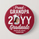 Muestre su alegría por el graduado con un elegante botón redondo de graduación personalizado con foto "Abuelo Orgulloso". La imagen y el texto de esta plantilla son fáciles de personalizar, y todo el texto, los colores y las fuentes se pueden cambiar con la herramienta de diseño de Zazzle. Se puede personalizar para cualquier miembro de la familia o amigo, como un padre, abuela, madre, padre, hermana, hermano, primo, tía, tío, etc. (CONSEJO DE POSICIONAMIENTO DE IMAGEN: Una forma fácil de colocar una foto exactamente como la desea es recortarla antes de subirla al sitio web de Zazzle). El diseño rojo y blanco incluye la foto del graduado, nombre y año de graduación. También cuenta con tipografía moderna elegante y letra de caligrafía con estilo. Este accesorio agrega un toque único a un atuendo de ceremonia de graduación o