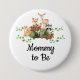 Animales de los bosques, botón "Mommy to Be" (Mamá para ser) para duchas de bebé con temática de bosques.