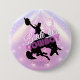 Botón de despedida de soltera de Disco Humorístico diseñado para el equipo de la novia. En hermosos colores gradientes de lavanda a periwinkle y rosa con una bola de discoteca funky, silueta de vaquero domando un bronco, fuente retro glamorosa "Bride 'em Cowboy" (el equivalente country de 'ponle un anillo') y fondo de luces de discoteca. Busque ID928 para ver otros productos de esta colección de moda.