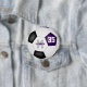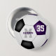 Este equipo pinta el botón de fútbol para chicas (o niños) y presenta la imagen realista de una pelota de fútbol que tiene paneles morados, negros y blancos - personalizar el nombre del jugador, número de monograma y camiseta - de katz_d_zynes