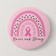 Octubre es el Mes de Conciencia sobre el Cáncer de Mama, pero es algo que deberíamos promover todo el año. Este botón presenta un arco iris rosado y una cinta de sensibilización sobre el cáncer de mama en el centro. Debajo dice Valiente y Fuerte. El arco iris tiene puntos de polka y corazones dentro. No seas tímido. ¡Muéstrale al mundo que eres una sobreviviente y eres valiente y fuerte!