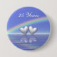 Pin con mi diseño de corazones plateados flotando en el agua bajo un arcoiris con texto de personalizable que dice "25 años".