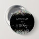 Botón negro de cumpleaños con nombre personalizado holográfico brillante
