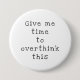 Botón simple con letras negras en un fondo blanco con la frase, "Dame tiempo para sobrepensar esto".